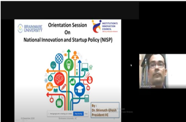 Universities have become major springboards for startup launches and innovation. To encourage startups and help guide our student entrepreneurs, the Institution’s Innovation Council (IIC) at Brainware University organized a Workshop on Orientation Session on National Innovation and Startup Policy on December 31, 2020 at 3.00 PM. Dr Shivnath Ghosh, Associate Professor & IIC President was the guest speaker for the session. The aim of the webinar was to introduce the basic framework of the National Innovation and Startup Policy and its importance for faculty and students to help kick-start their entrepreneurial projects.