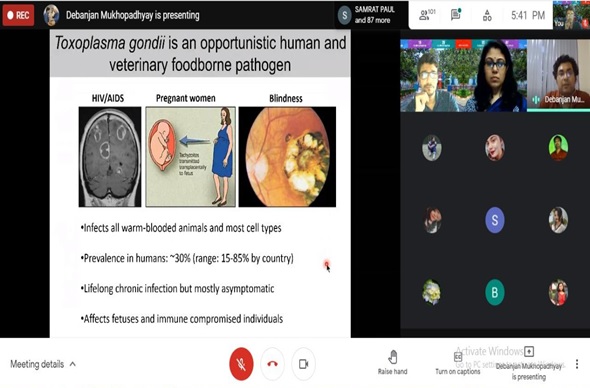 The department of Biotechnology, Brainware University organized an online workshop on “Interferon gamma, Toxoplasma, and human fibroblasts: A story of identification of parasite virulence factors to mechanism of parasite clearance” on May 29, 2021. The purpose was to provide the participants with a profound knowledge regarding the mechanisms behind host defense against parasitic diseases. The guest speaker, Dr. Debanjan Mukhopadhyay, Scientist, National Institute of Biomedical Genomics, Kalyani was invited to grace the conduct the session. The workshop was attended by more than 130 participants including members from outside the institution.