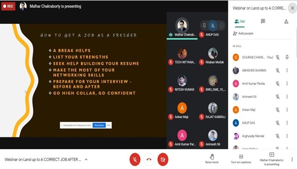 The speaker started off the discussion by giving students an idea of how to grab opportunities in the corporate world. Mr. Mukhopadhyay boosted the confidence of the students and encouraged them to believe in themselves. Through this webinar the students could explore different avenues to be in the corporate world.