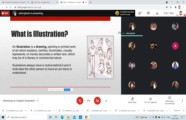 Graphic Illustrators are in demand in the job market. To help students navigate through the field of professional graphic illustration and inform them about the job opportunities, The Department of Multimedia organised a Workshop on Graphic Illustration on May 29, 2021 from 5:30 PM.