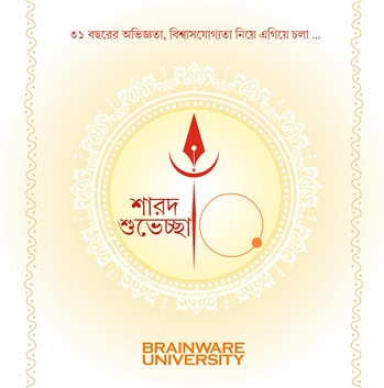 Brainware University wishes its staff members, students and all a very auspicious Durga Puja. However, since the pandemic rages on unabated, this year’s puja would be different and has to be, for we need to protect ourselves and take apt precautionary measures against the same. It would be advisable to stay at home and be part of the virtual puja and adda group. Wear masks when you step out and avoid big gatherings. Till a reliable vaccine appears on the scene, it is good to maintain social distancing. Using sanitizers and washing hands frequently would help.