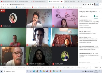 Today, millions have their active ID on an OTT platform. This provides a convenient and user-friendly environment, where they can download movies and watch them later. According to Business Wire, the total number of OTT users will reach 915 million by 2023, most of whom will be subscribing to at least one SVoD (subscription-based video-on-demand) service. To discuss the changing scenario of the entertainment industry in the post-pandemic era, the Department of Mass Communication and Journalism organized a webinar on October 10, 2020 at 11 am on 'Emerging Content: Big Screen to OTT.’ Mr. Judhajit Sarkar, Director, Producer, Writer, & visiting faculty of the dept. of Media Science, Heritage Academy, NSHM Kolkata, addressed the webinar to enlighten the audience.