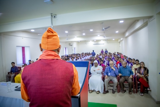 The Honourable Chancellor, Mr Phalguni Mukhopadhyay, along with all the dignitaries, and a total 150 students experienced the eloquent speech of Swami Ji regarding the positive aspects of life in different ways.