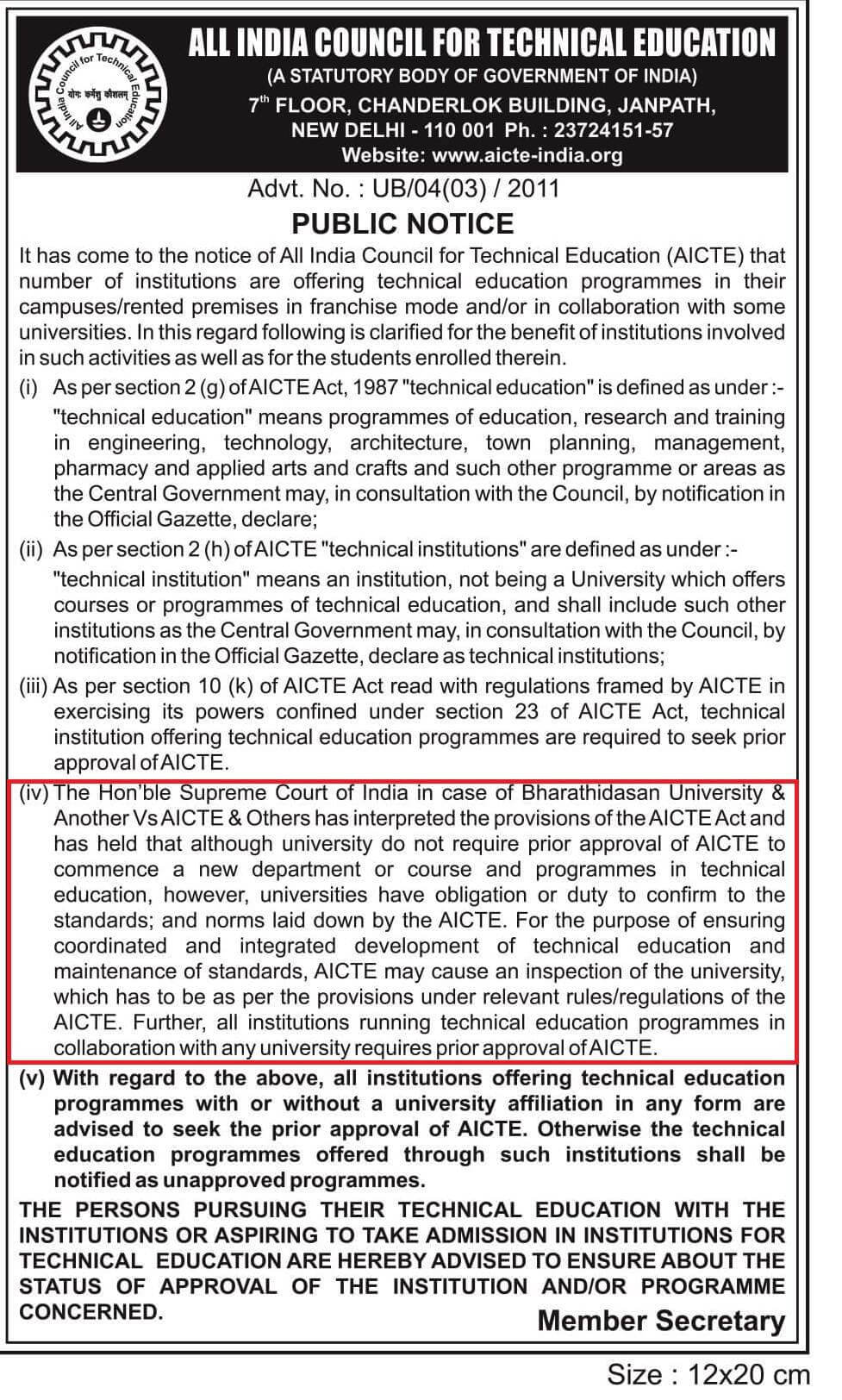 As Brainware University is a Bonafide University established by a State Act, it does not require AICTE approval. This standing of law is notified in the case of Bharathidasan University Vs AICTE.