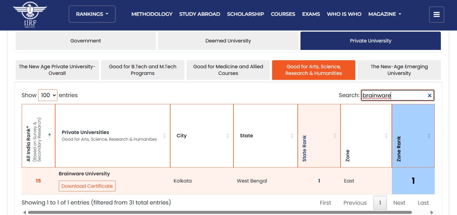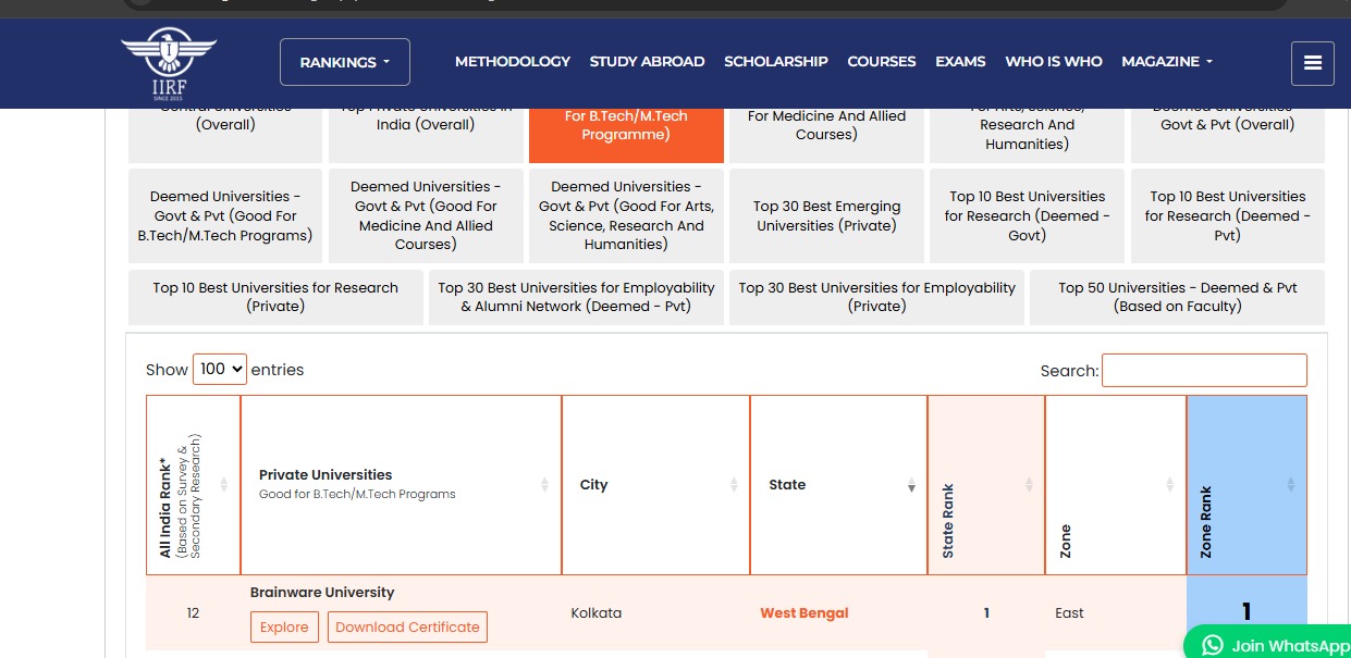 Brainware University has once again secured its position as the No. 1 technical private university in West Bengal, topping the list of private engineering colleges in the state for the third consecutive year. In the 2025 edition of the IIRF rankings, Brainware University received national recognition under the category of 'The New Age Private University' and was lauded for its academic excellence across Arts, Science, Research, and Humanities, as well as for its outstanding BTech and MTech programs.